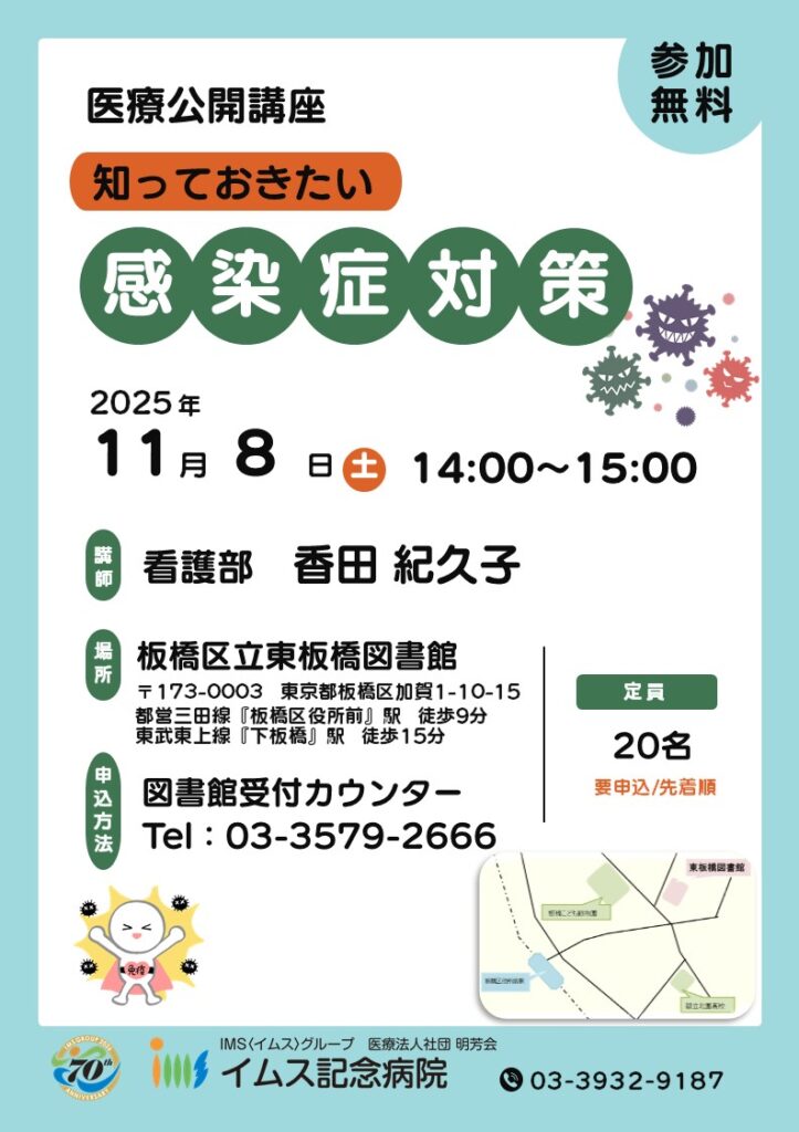 本日、11月8日(土)に開催する 「イムス記念病院公開講座 知っておきたい感染症対策」 の