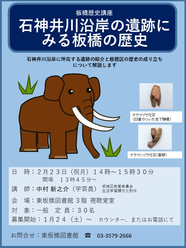 2月23日(月・祝)に開催する「板橋歴史講座」の申込み受付を開始しました。