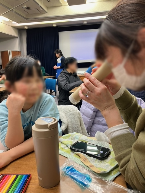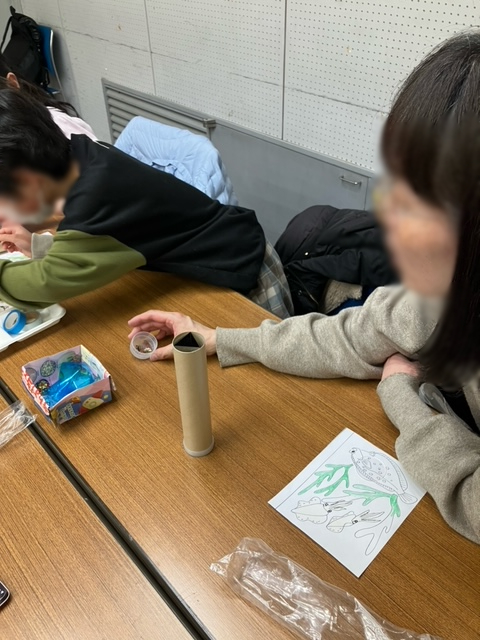 エコ工作会「海藻万華鏡」を終えて 2026年2月18日 お知らせ, イベント報告 2月1日(日)にNPO法人水未来人(みずみくにん)の方をお迎えして「海藻万華鏡」を作るエコ工作会を開催しました。 夏休みに開催予定だった本イベントですが、心待ちにしていてくれた子どもたちも多く賑やかな雰囲気で海藻や海の生態系のことなども勉強して工作を楽しんでいました。 できあがった万華鏡を見て力作に皆様大満足な笑顔でした! 参加された皆様、NPO法人水未来人様ありがとうございました! (できあがった万華鏡をスマホで撮影をさせていただいたものを掲載) Share: Older Post 「落語絵本読み聴かせ」を終えて Newer Post 浮世絵講座「江戸の版元ー蔦屋重三郎を中心に―」を終えて
