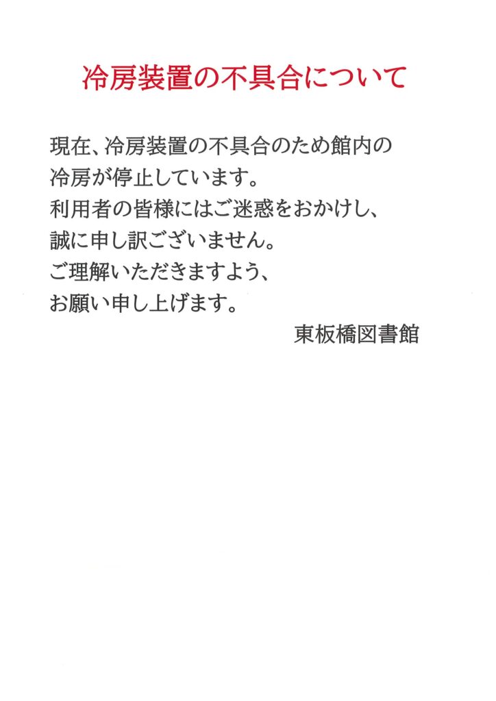 冷房設備の不具合について
