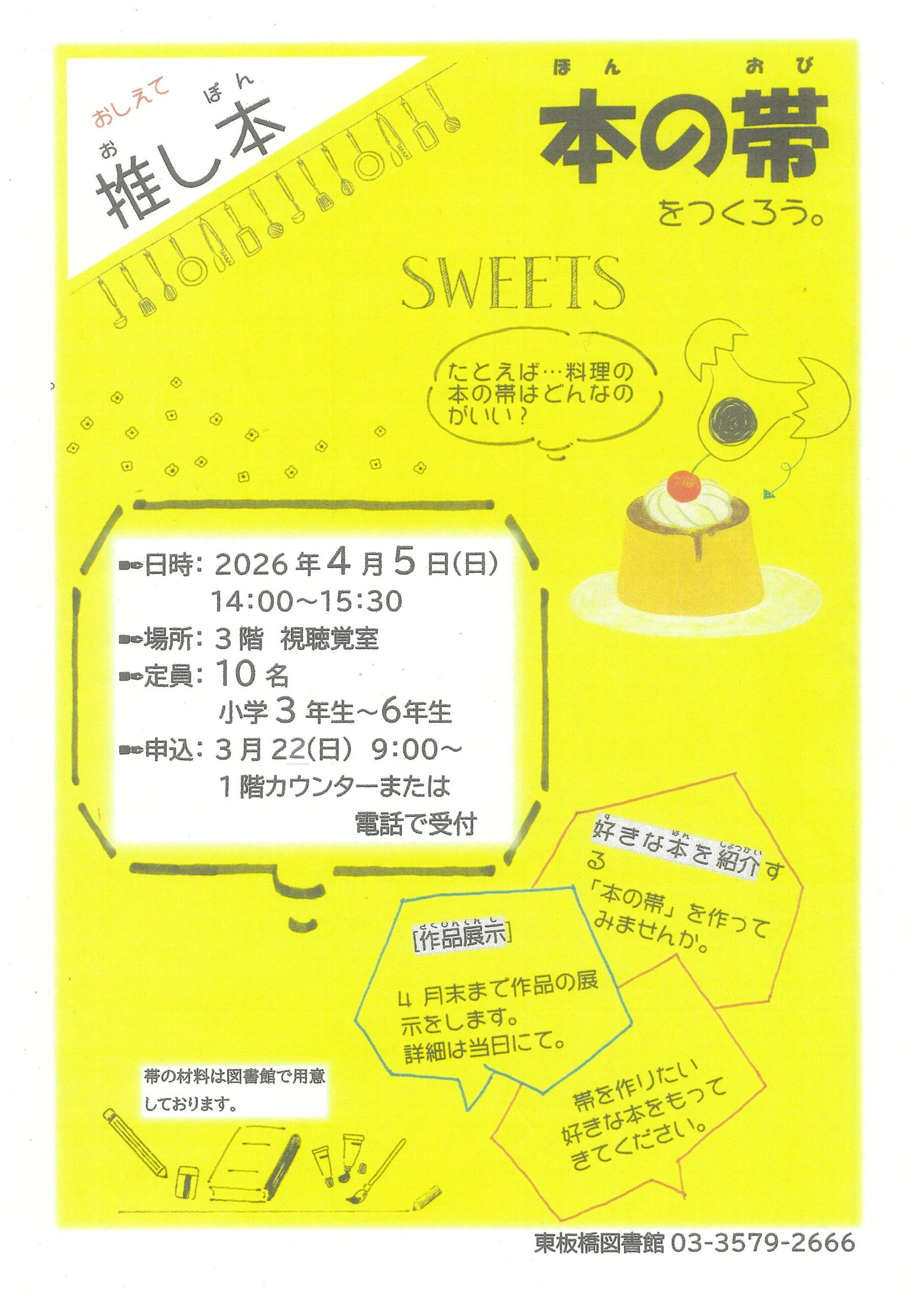 本日より、4月5日(日)に開催する工作会『本の帯をつくろう。』の申込み受付を開始しました。