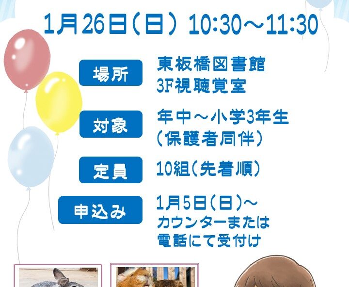 1月26日(日)開催の「出張ふれあい動物園」の申込受付を開始しま…