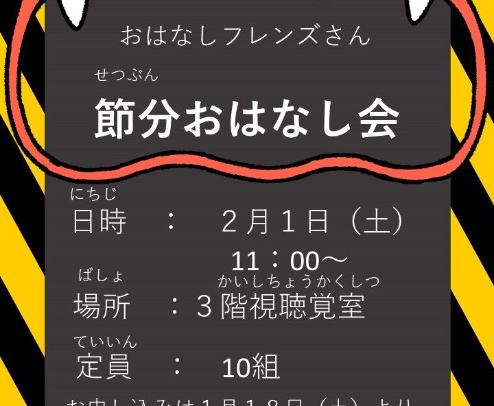 1月18日(土)より、2月1日(土)に開催する「節分おはなし会」…