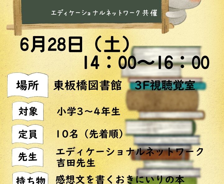 6月28日(土)開催「読書感想文講座」の申込み受付けを開始しまし…