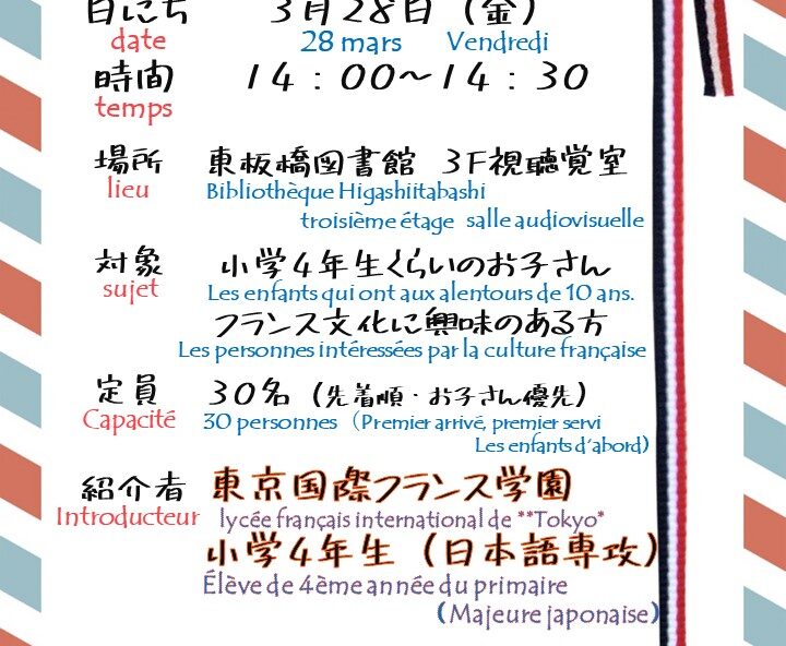 3月28日(金)開催の「フランス学園交流会」の参加申込みを開始し…