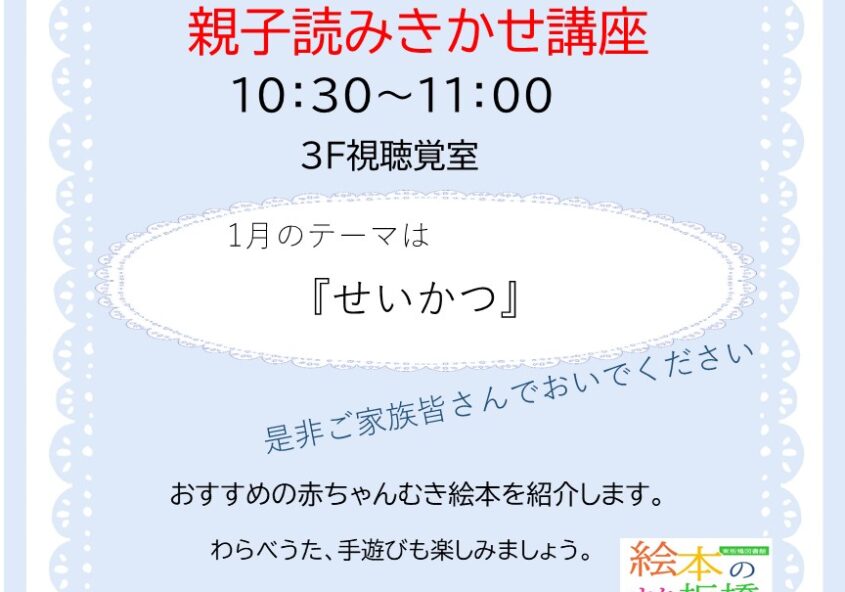 ただいま、1月12日(月)に開催する「赤ちゃんおはなし会スペシャ…