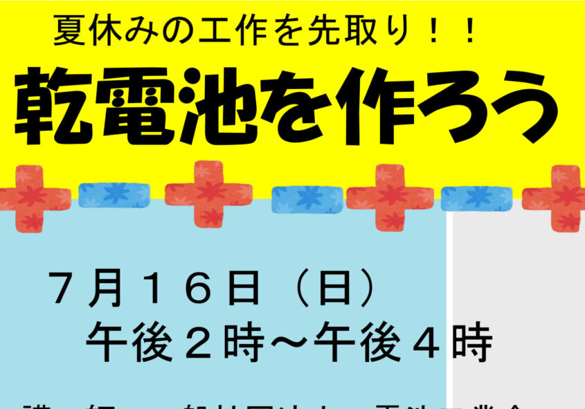 7月16日(日)14時から工作イベントを開催いたします!乾電池を…