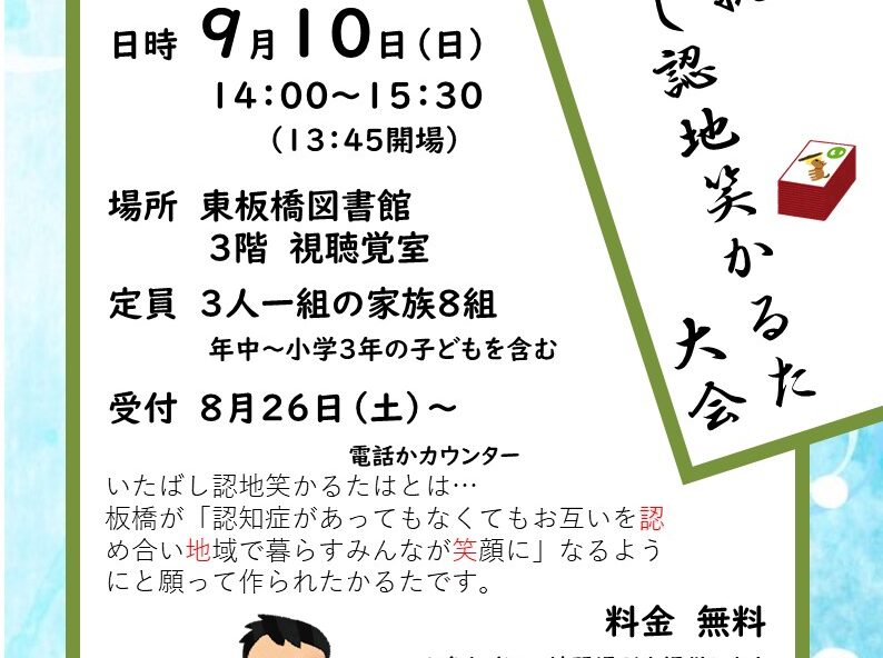 9月10日「日」14:00~開催します。 家族で認知症について、…
