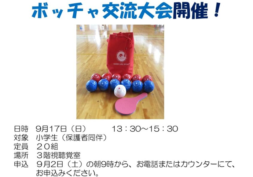 9月17日(日)13:30からボッチャ交流大会を行います! ボッ…