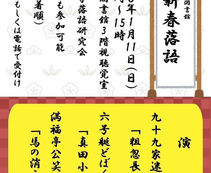 1月11日(日)に立教大学落語研究会の皆さんをお迎えして開催する…