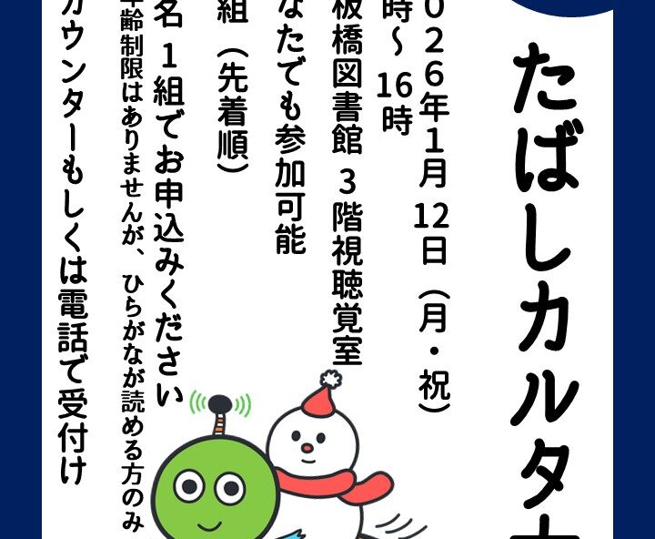 1月12日(月・祝)に開催する「いたばしカルタ大会」の申込み受付…