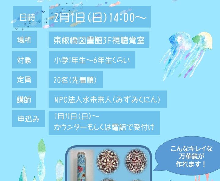 2月1日(日)開催のエコ工作会「海藻万華鏡」は定員になったため申…