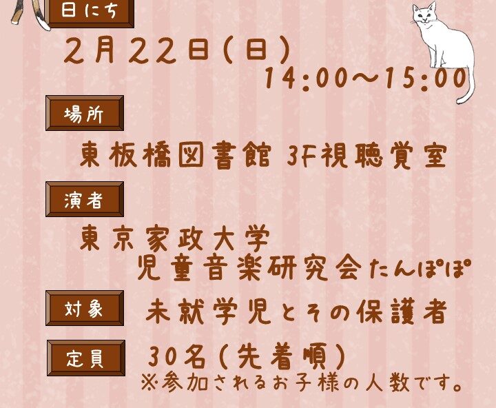 本日より、2月22日(日)に東京家政大学児童音楽研究会たんぽぽの…