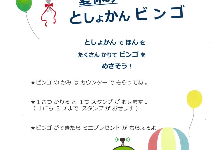 東板橋図書館では8月18日(日)より、「夏休みとしょかんビンゴ」…
