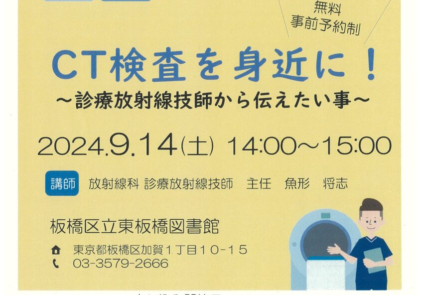 9月14日(土)に開催する「CT検査を身近に!」の参加者の募集を…