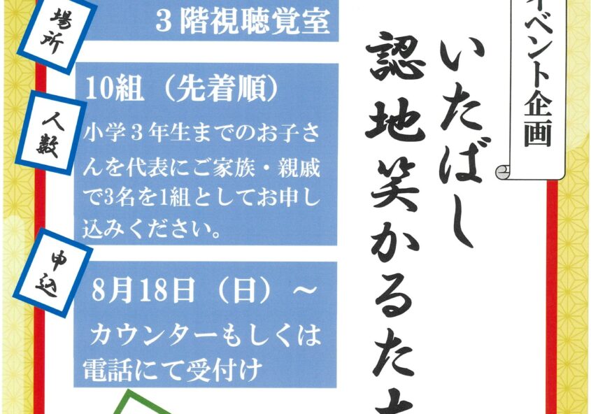 9月7日(土)に開催する「いたばし認地笑かるた大会」の参加者の募…
