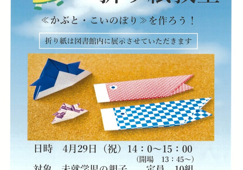 4月29日(祝)14:00~15:00開催の「おやこ折り紙教室」…