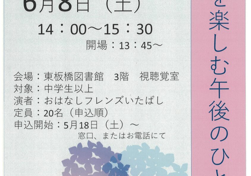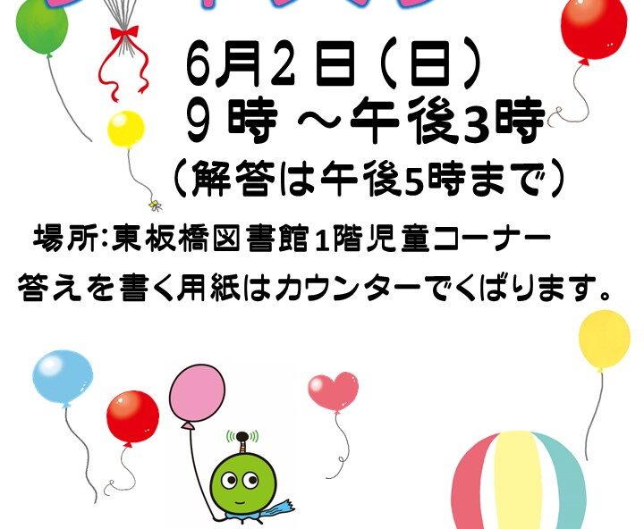 6月2日(日)9:00~15:00に東板橋図書館1F児童コーナー…