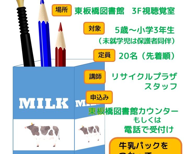 8月10日(日)開催エコ工作会「紙パックペンスタンドをつくる」の…