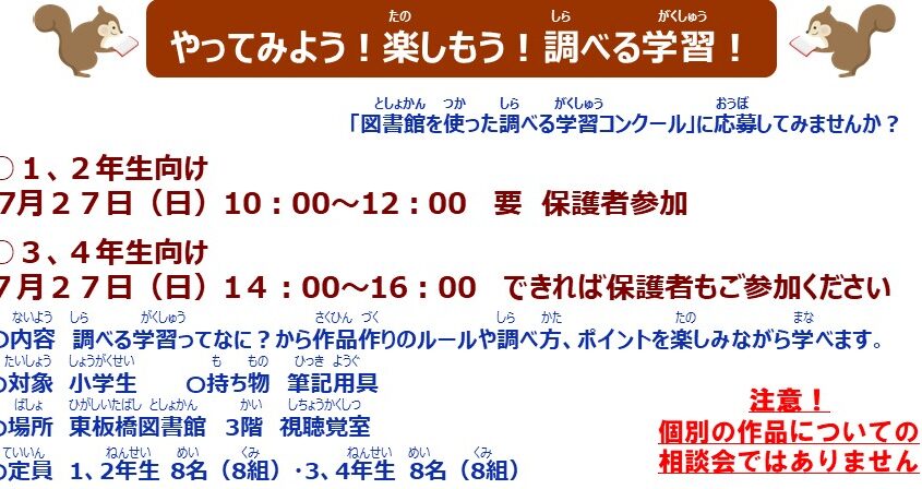 7月27日(日)に開催します「やってみよう!楽しもう!調べる学習…