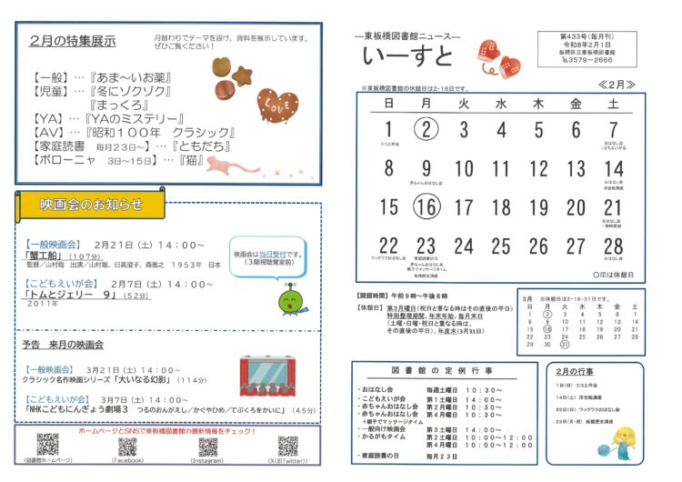 東板橋図書館ニュース「いーすと」2026年2月号